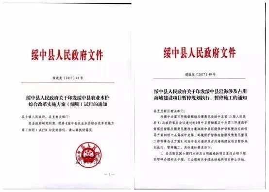 把一份文件復(fù)制粘貼過來,首先記得改文號。文號是一份紅頭文件的臉面,兩份文件湊合一個文號,你想過文件的感受么?遼寧省綏中縣一個綏政發(fā)[2017]49文號,匹配有兩個完全不同的文件。其中一份就屬于臨時編造、應(yīng)對環(huán)保檢查的假文件。而這個假文件背后,庇護著一個嚴(yán)重違規(guī)的圍填海項目建設(shè)。