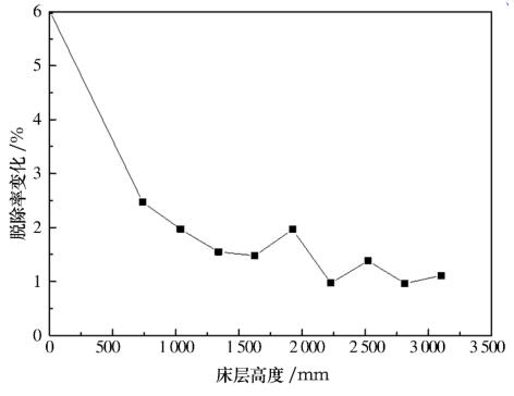 圖5 NOx脫除率變化與活性炭床層高度的關系