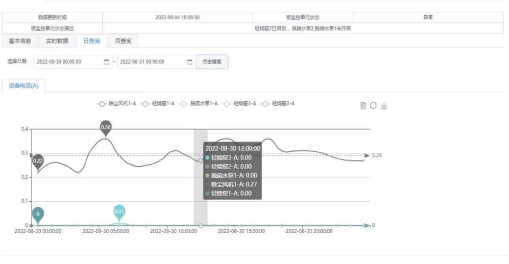 2022年9月8日,大石橋市生態環境分局執法人員通過查看自動在線監測平臺數據發現,大石橋市某某建材廠(重點排污單位)自動監控設備處于離線狀態,無污染物數據上傳,但調取用電監控平臺數據顯示,該單位重燒窯存在1A以上電流,疑是窯爐處于生產狀態,在線數據與用電工況數據不符。大石橋生態環境分局執法人員立即對該單位進行現場核查。