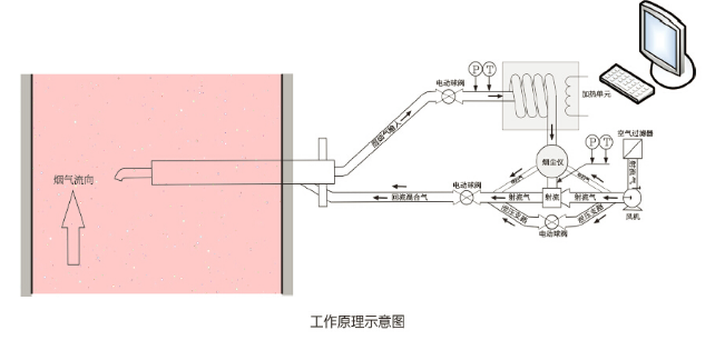 預處理模塊尾氣經(jīng)采樣探頭重新返回煙道。所需射流氣、吹掃氣均由潔凈風機單元產生,吹掃氣 用于清潔煙塵儀的光學部件,確保系統(tǒng)長期可靠工作。