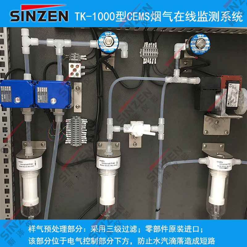 備注:被測氣體進入分析儀表前,需過濾去除粉塵和水蒸氣,依次為:氣態污染物采樣探頭內的陶瓷或不銹鋼過濾器,預處理機柜內1~2處過濾器。正常情況下,分析儀采樣流量一般在1~2L/分鐘。