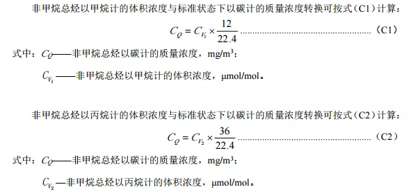 注:(1)以上各參數區間劃分以參比方法測量結果為準。(2)F.S.表示滿量程。(3)非甲烷總烴排放濃度單位換算按照如下公式換算