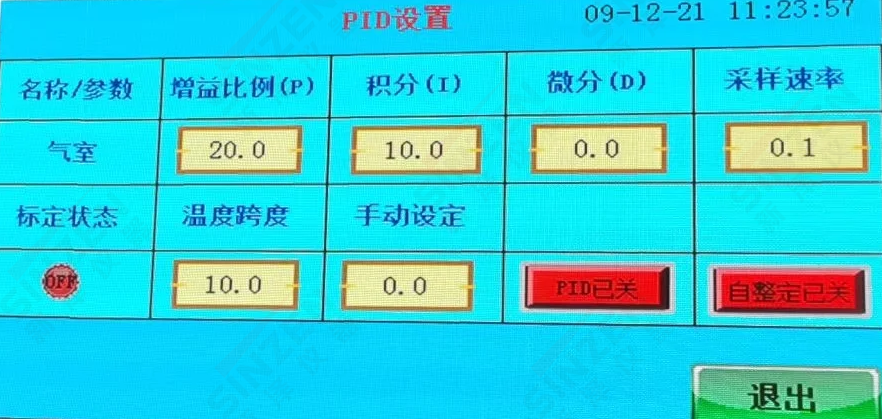溫度PID自整定畫(huà)面應(yīng)該是PID已關(guān)按鍵變成綠色按健,PID已開(kāi)為正常狀態(tài)。當(dāng)溫度到達(dá)180度設(shè)置值后,需要手動(dòng)點(diǎn)擊一下自整定已關(guān)按鍵,變成綠色,自整定已開(kāi),經(jīng)過(guò)一分鐘后自動(dòng)恢復(fù)紅色狀態(tài)。