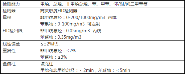 ● 采用微型的 FID 檢測器,其極低的檢測下限(0.01ppm)對總烴、非甲烷總烴、酮類、烯烴、醇類、笨類等多種有機(jī)物廢氣具有超高的靈敏度、卓越的重現(xiàn)性及高效的分析效率;